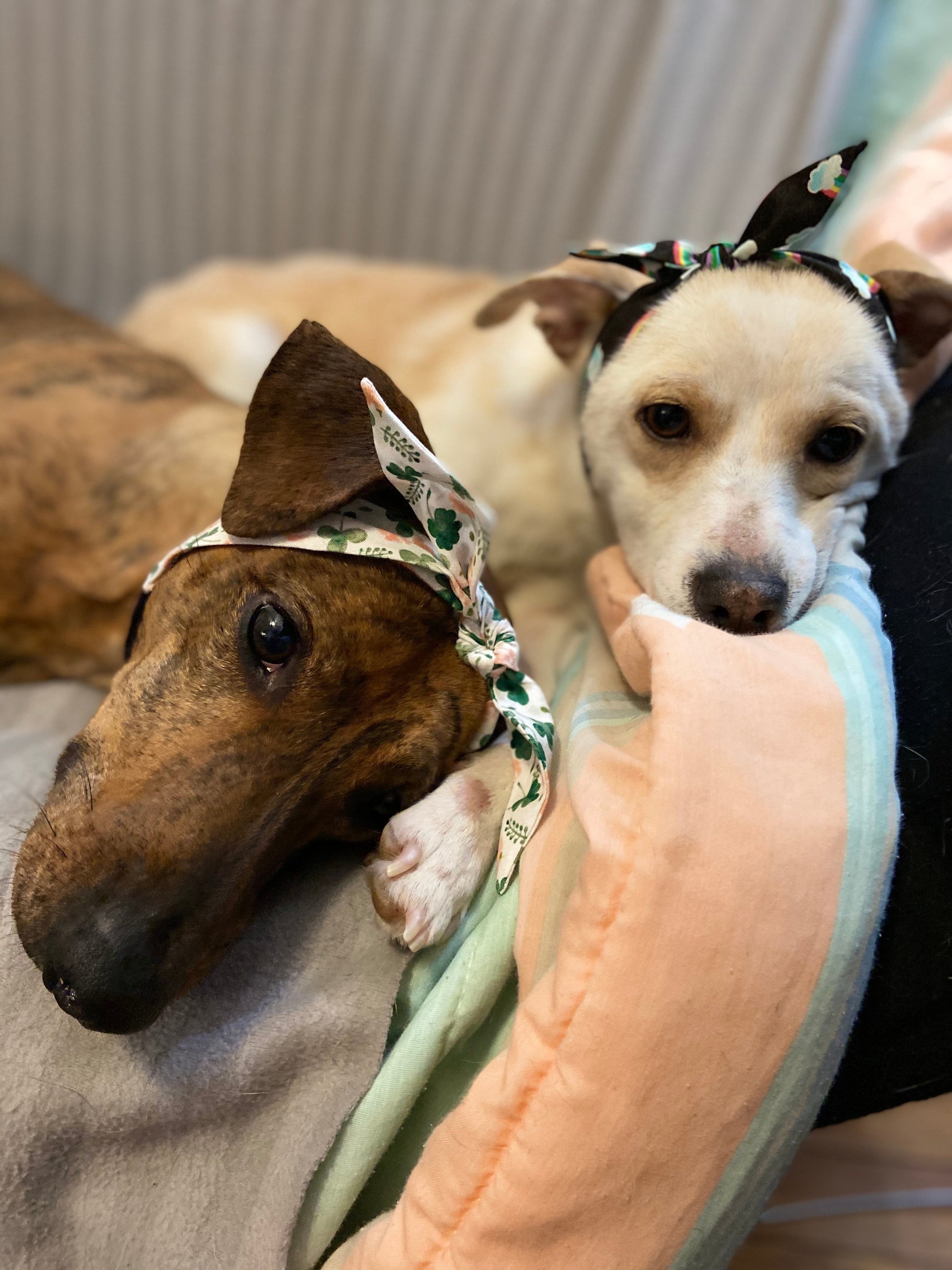 Top-knot headbands come in two sizes for pups, and one size for humans! The headbands are made from coordinating bandana fabrics, and are finished with super comfortable nylon bands for and close, comfortable fit.
